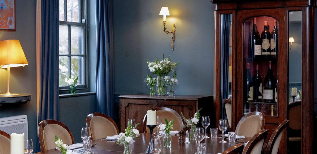 A secret staircase behind the bar leads you to The Blue Room. Vintage prints of the legendary Avalon Ballroom in San Francisco set the scene. Beautiful rococo wall lights reflect the luxurious atmosphere whilst handsome Georgian furniture (including a mahogany dining table seating 22) creates a setting for indulgence. A perfect space for private dinner parties, birthday parties, hen parties – whatever takes your fancy. The Blue Room boasts a 100 inch high-definition screen with surround sound, high-spec stereo system, soundproofing and Wi-Fi throughout. If you’re on business, it’s a perfect room for private lunches, brainstorming sessions or team away days that combine work with fantastic pub dining. Bespoke food and drink menus can be created to suit your individual requirements. Please call Sophie on 020 8675 8613 or email with any enquiries.If you’re looking for a beautiful private room south of the river, look no further.